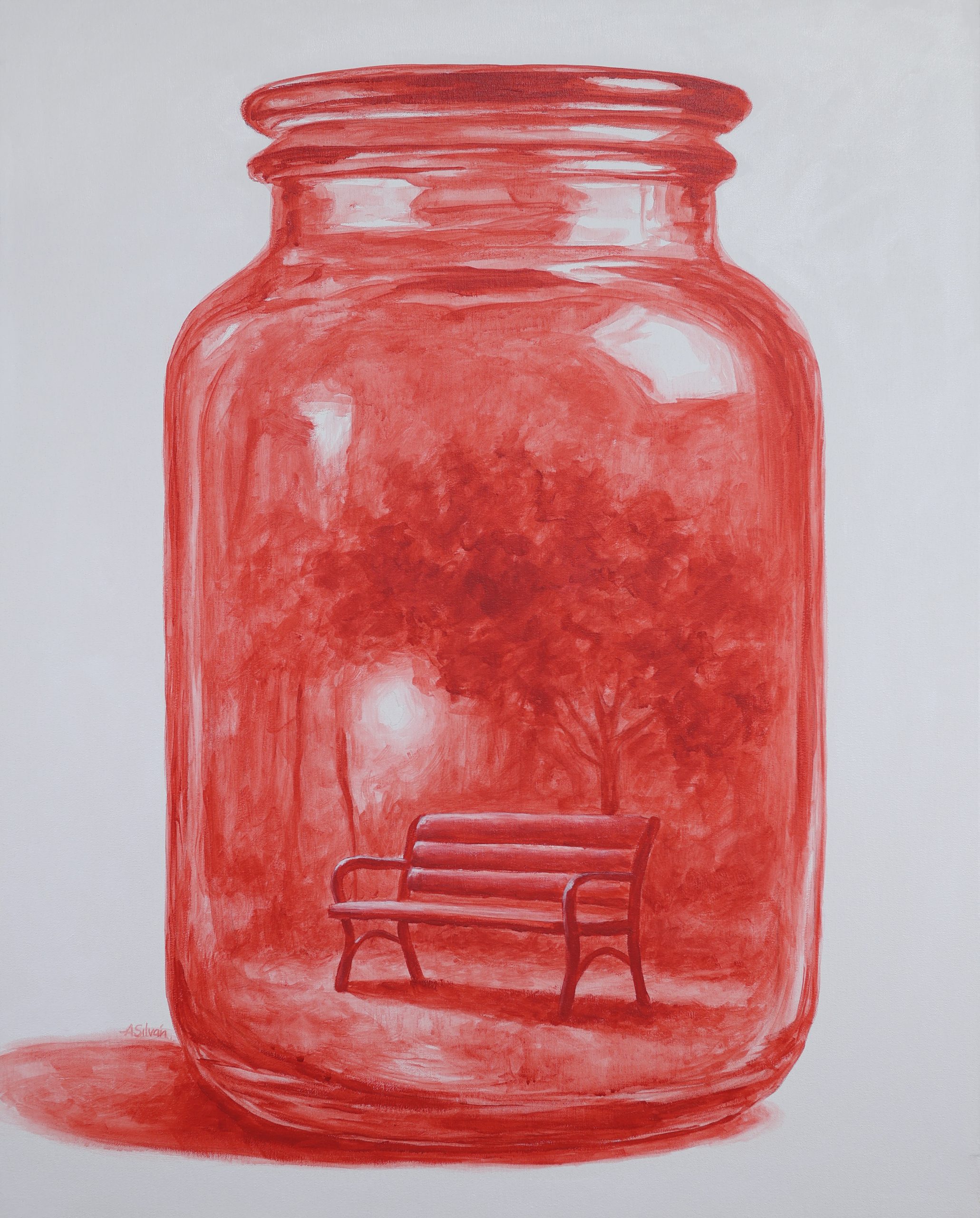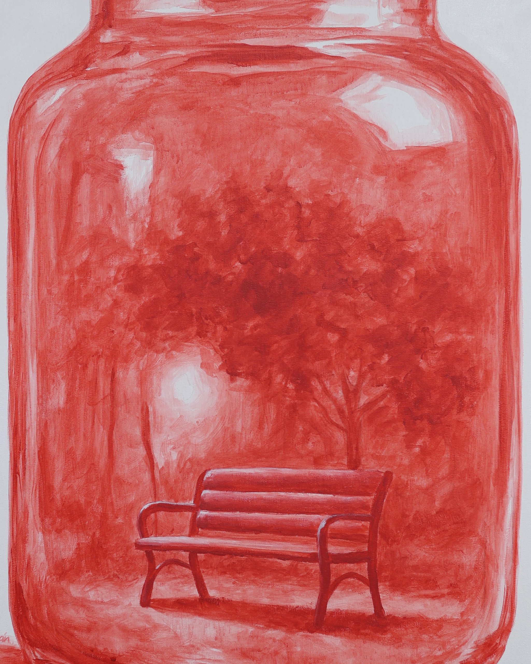 La imagen es simple y reconocible: un banco, un parque, una luz. Pero el significado no está en la pintura, está en quien la observa.