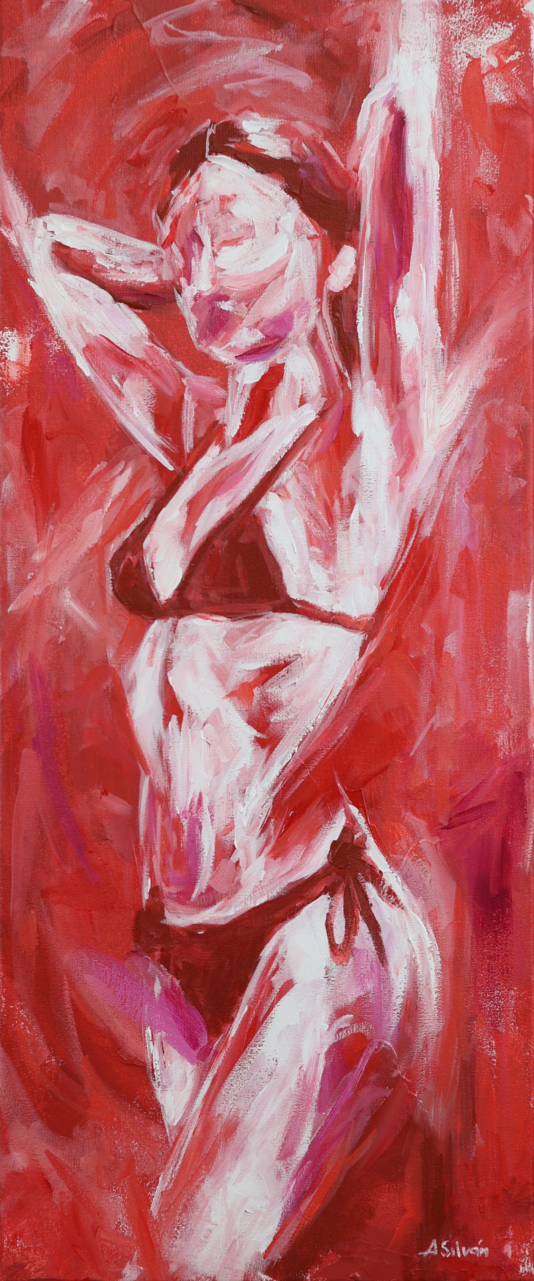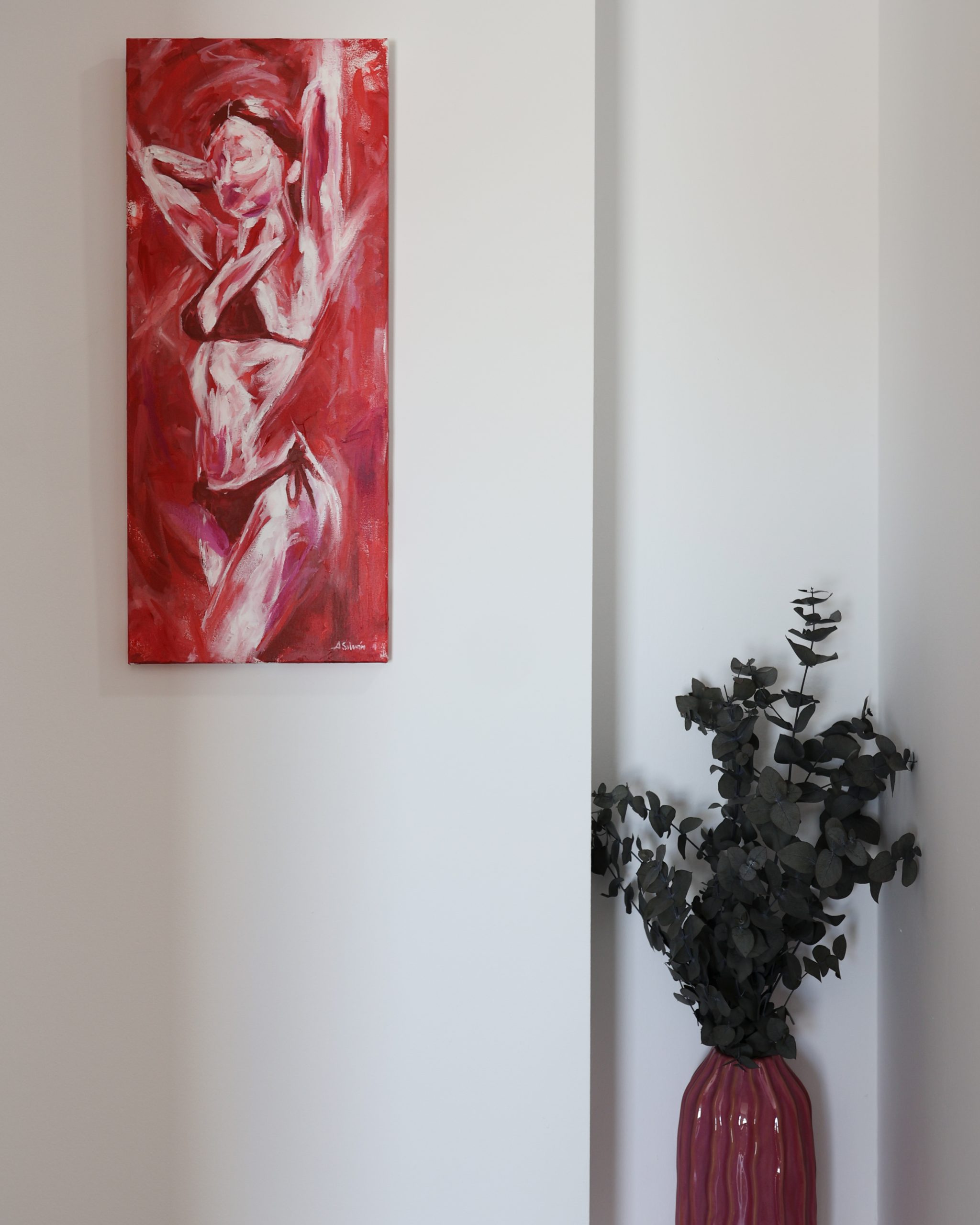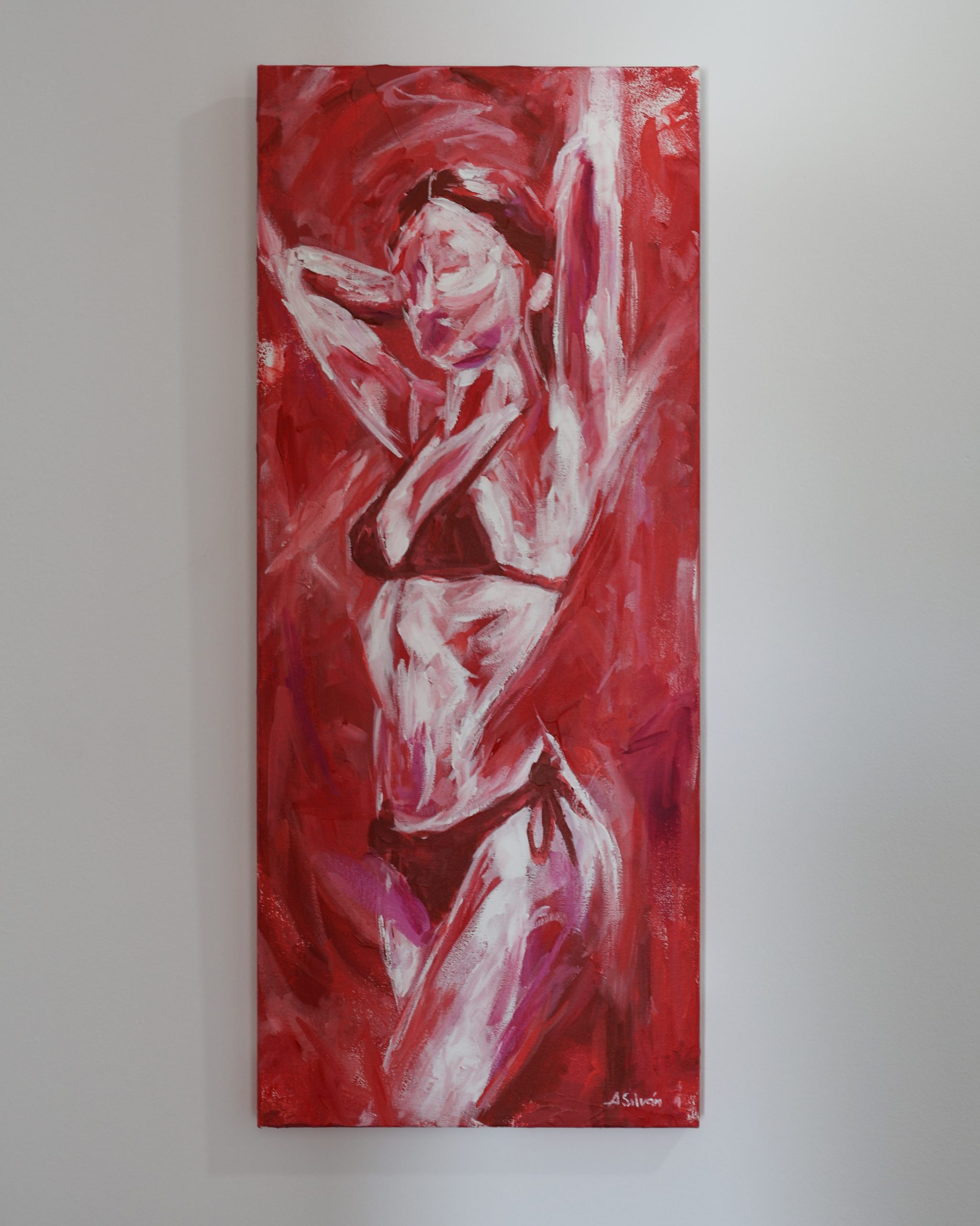 He trabajado con mi rojo Silván como base, pero esta vez con una gama más amplia, tratando de ser más expresivo, con más garra. Una especie de “blanco y rojo” que lo envuelve todo.